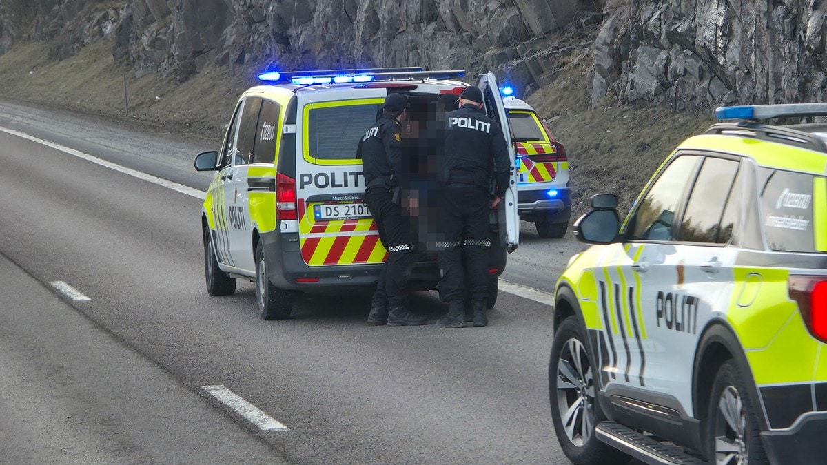 En mann i 20-årene er pågrepet ved E6. Politiet avfyrte varselskudd og truet den mistenkte med våpen.